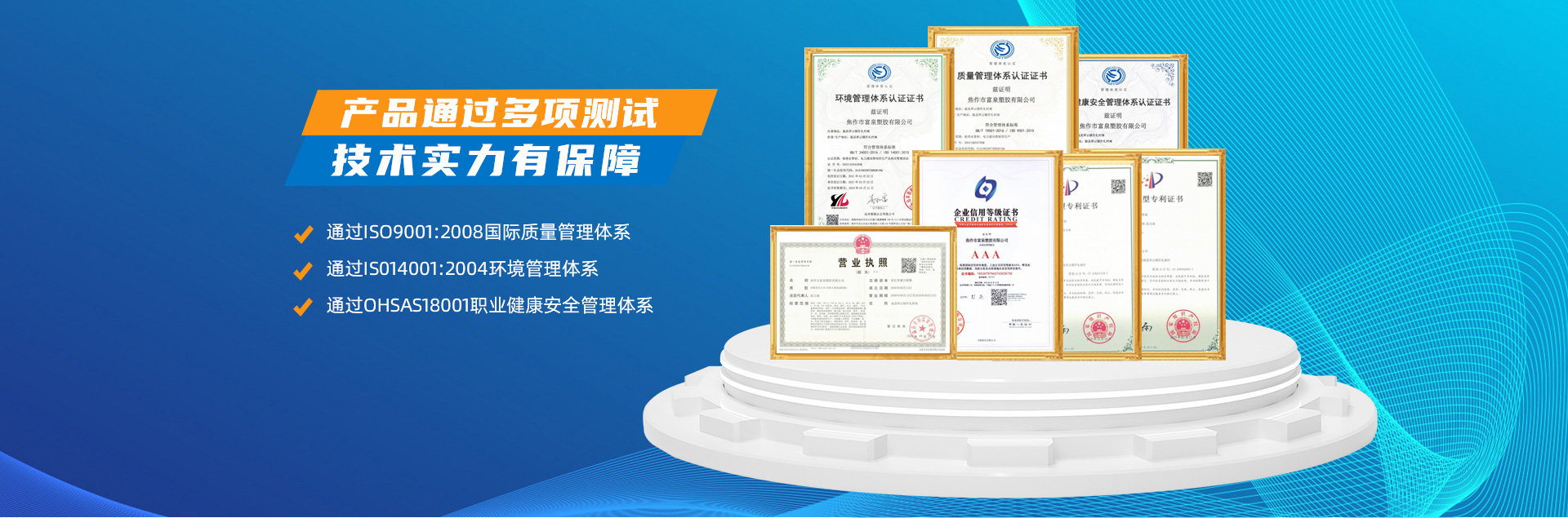 - 焦作市富泉塑膠有限公司,創(chuàng)立于1995年,是一家集研發(fā)、設計、生產(chǎn)、銷售為一體的大型管材企業(yè)。公司位于太極故里、黃河之濱一一河南焦作溫縣。公司占地128畝,現(xiàn)有職工210余人,其中具有中技術(shù)職稱的19人。生產(chǎn)、檢驗設備58臺(套),包括PVC實壁管生產(chǎn)線11套、PE實壁管生產(chǎn)線12套、HDPE雙壁波紋管生產(chǎn)線6套、PVC雙壁波紋管生產(chǎn)線5套,檢驗設備14臺(套)。主要產(chǎn)品有:Φ20mm-630mm、各種壓力規(guī)格的PVCU、PVC-M、PE給水管材,PVC-U節(jié)水灌溉管材,HDPE燃氣和礦用管材,DN200-800mm的HDPE、PVC雙壁波紋管及各種噴灌、滴灌工程材料。承接大中型市政供排水、飲水安全及節(jié)水灌溉等工程?! 「蝗苣z公司重視產(chǎn)品的質(zhì)量、安全、環(huán)保和節(jié)能,在同行業(yè)中率先完成了“新華節(jié)水產(chǎn)品認證”,全方面通過ISO9001:2008國際質(zhì)量管理體系、IS014001:2004環(huán)境管理體系和OHSAS18001職業(yè)健康安全管理體系的一體化導入,并建立起規(guī)范的現(xiàn)代企業(yè)管理體系。公司以“質(zhì)量”為先導,采用質(zhì)量跟蹤、多環(huán)節(jié)把關(guān)的方法,組建具有行業(yè)水準的企業(yè)技術(shù)檢測中心,常年委托水利部節(jié)水灌溉設備檢測中心、河南省產(chǎn)品質(zhì)量監(jiān)督檢驗院對產(chǎn)品跟蹤檢測,并由中國人民保險公司承保產(chǎn)品質(zhì)量。公司連續(xù)多年被河南省水利廳確定為“安全飲水設備、節(jié)水灌溉設備”定點生產(chǎn)企業(yè),并獲得“中國名優(yōu)產(chǎn)品”“質(zhì)量、服務、信譽AAA企業(yè)”“河南省**產(chǎn)品”“河南省水利企業(yè)”“河南省守合同、重信用企業(yè)”等榮譽稱號。 富泉塑膠公司堅持“用戶為上”的服務理念,長期以來,全方面關(guān)注客戶價值,不斷提升服務水平。服務隊伍常年為客戶的產(chǎn)品設計、施工、安裝提供合理的方案和全程細致、周到、**、快捷的技術(shù)服務。公司自成立以來,一直堅持以人為本的宗旨,塑造企業(yè)形象,并致力于新產(chǎn)品的開發(fā),憑借雄厚的技術(shù)開發(fā)能力,先進的工藝制造流程,嚴格的質(zhì)量管理保證體系,優(yōu)良的售后服務網(wǎng)絡,已成為河南省大的飲水、灌溉及排水管材設備制造商。產(chǎn)品暢銷全國,而且還以公司雄厚的綜合實力在業(yè)界中占據(jù)著重要的地位。